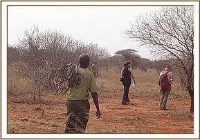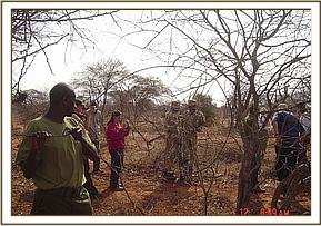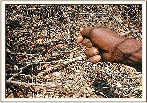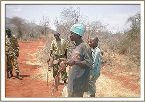 Upon meeting with the Ziwani team Mr. Nichodemus Kivindyo from The David Sheldrick Wildlife Trust gave a presentation on the Trusts work and projects which included all the desnaring projects, the mobile veterinary projects, the Orphans project, and the community outreach programmes. During this presentation he gave a brief outline of the areas of operation for each project and details on the goals of each project for animal welfare. The Ziwani Team leader, Henry Lekochere then gave a talk on the Ziwani Teams work & progress from January 2008 to date. This talk included detailed explanation of poaching patterns and snare & arrest statistics. The total numbers of WSPA delegates were 18 persons. After the introduction and presentation it was time to plan how to go about allocating all the WSPA delegates to take part in the desnaring activities. Since the number of delegates was high we decided to divide them into 2 groups with 9 in each group. It was decided that in the morning one group would take part in desnaring whilst the other goes for a game drive and in the afternoon the groups will swap. The first group was able to locate and take down 8 snares all targeting bug game.