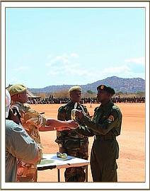 The Passing Out parade was conducted in the distinguished presence of the Deputy Director Devolution & Community Service, Mr. Benjamin Kavu, HSC. He spoke of the enormous task of stopping poachers on the ground.