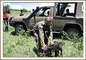 Treatment of a buffalo (Syncerus caffer) with fluid accummulation in the joints in Mara Triangle.
