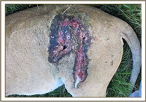 All the wounds were washed with clean water, debrided with hydrogen peroxide and lugols iodine applied. Green clay was also packed into the bigger wound. In addition 150000mgs amoxicillin was given intramuscularly.