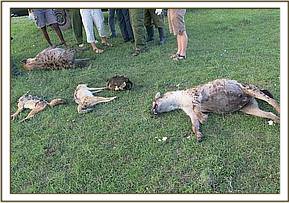 Masai mara national reserve chief park warden called to report sudden deaths in hyenas and jackals within the park close to Talek area. He was advised to note Gps location of each carcass, and then transfer all the carcasses to a central place. This was to ease postmortem examination and guard against further scavenging as this appeared like a poisoning case.