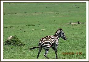 This female zebra was seen walking with difficulty and dragging a snare by Mara Triangle Conservancy rangers. The zebra could hardly walk and spent most of her time lying down alone in the open. There was a snare round her neck which had entangled her left shoulder. They immediately notified the Veterinary Unit.