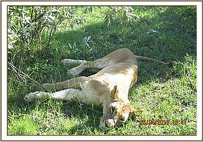 This lioness of about eight years old was seen walking with difficulty. She has an eight month old cub and is a member of pride of several lions. The Veterinary Unit found this lioness lying on her right lateral position, breathing with ease but unable to stand. She appeared to be in good body condition. Her cub was beside her but no other lion seen around. This lioness was aware of our presence and could move her head though she could not stand. The mouth appeared unusually dry. When agitated, she stood up and tried to move with poor co-ordination. However she lost her balance when she tried to move and fell on her side, picked herself up then fell on the opposite side. It was hard to arrive at an accurate diagnosis clinically and it was not safe to immobilize this lioness at this state.