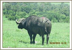This buffalo was seen dragging a three meter long snare wire by Masai Mara National reserve rangers at Olkiombo airstrip. This buffalo appeared to be in good body condition. The wire appeared loosely attached causing nuisance but no damage.