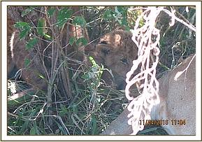 We found the pride under a tree near the road relaxing after a recent meal. This was a pride of close to twenty lions composed of cubs of various ages. The smallest was about two months old and was the one described as having strayed. He had gone back to her mother, lied briefly on her side before moving ahead to suckle. Closer examination with binoculars showed that there was no problem with his eyes and was just behaving normally. There was no evidence of visual impairment as described. This innocent lion cub due to curiosity and excitement had wandered to the van which had pulled close to the pride and is a phenomenon common with small lion cubs.