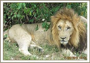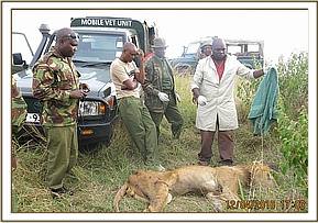 This male lion, a member of Notch pride occupying lookout area within the reserve was seen by a visiting tourist who had developed interest in following this pride over some years. He reported seeing this male with lesions on his abdomen resembling those caused by mange. The vet unit responded and traced this pride to a hideout not far from look out.