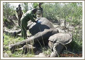 This elephant was seen in a group of about twenty elephants with an injury by Mara Bush Tops and KWS patrol teams. They informed the unit for attention.