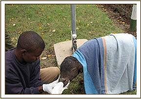 Treatment of a Colobus monkey in Elsemere farm in Naivasha