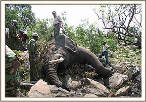 Treatment of a wounded male elephant in Mara Triangle