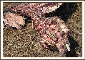 During the month of August there were two incidents of elephant mortalities reported to the veterinary unit in Mara. One of the cases was a 4 year old male elephant that was found dead a few kilometers from Oloololo gate, it had both the tusks intact and the carcass was still fresh but almost completely preyed on by vultures and hyenas. It was reported that the young elephant was seen limping a few days ago before being found dead later on. After a close observation of the carcass, the elephant was found to have a fracture of the femur bone of the right hind leg. Due to the fracture, it was unable to move and hyenas would have taken advantage and killed it as an easy prey. The two small tusks were recovered and taken to KWS custody in Ewaso Ngiro.