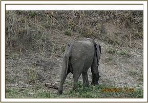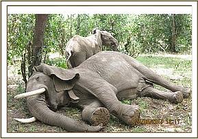 This calf was by herself browsing on lush forage at the river bank. A spear head was seen stick on the right side slightly off her sacrum.
