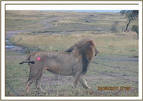 Closer examination revealed that this was a lion treated couple of months back at Talek area for a serious spear wound on his left hindleg.The injury had damaged the knee joint with the joint capsuled being torn and synovial fluid partly escaping. His condition then was bad as he could not use the leg completely. The joint was closed with sutures and the wound margins apposed. He healed completely but with a limp. The fresh wound was cleaned, disinfected with tincture of iodine and oxytetracycline spray applied.More treatments involved parenteral administration of 3000mgs amoxicillin antibiotic, 16mgs dexamethasone sodium anti-inflammatory and cotasal which helps in muscle and nerve regeneration.