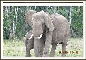 Using emitted signals from the collar, the elephant was tracked to a thicket by Mara River at Musiara. She had a three-year-old calf. A small swelling was seen on her left shoulder without any open wound or discharge.