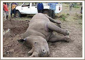 Kigio Wildlife conservancy is in Naivasha area, it borders Marula and KARI ranches in the North lake side. The ranch had two White rhinos that were introduced there from Lewa Wildlife Conservancy in the year 2003 to help promote tourism activities in the area. The rhinos have been in good condition and well protected until 9/12/07 when the manager reported to KWS veterinarian that the male rhino was seemingly ill, the management was then advised to monitor the animal for some time before the veterinarian arrived but shortly afterwards it was found dead. There was no any form of injury to the animal and it was in a very good body condition when it died, no signs of struggle at the site of death. Postmortem examination was then carried out and the findings were as indicated below.