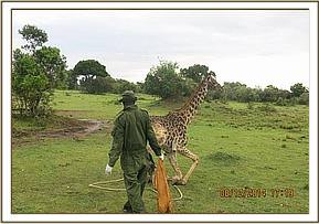 These two cases were reported to the Mobile Vet Unit by the Mara Triangle rangers after they were spotted in the community areas. The Mara Triangle rangers were undertaking joint patrols with the Care for the Wild team and they kept watch over these giraffes before the arrival of the Vet Unit.