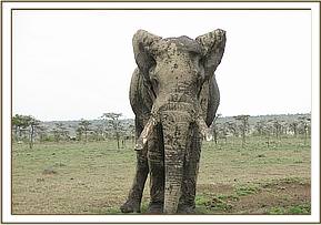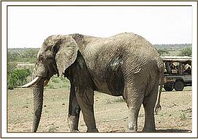 This big bull in his early 50’s was seen with fresh injury on his left flank by Olkinyei conservancy rangers who informed their manager to contact the veterinary unit. This big bull was found with an equally big colleague wallowing. He had a fresh wound on his left flank and several old and healing wounds on his right flank, right shoulder and left leg. His body condition appeared to be good though.