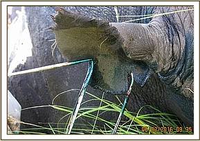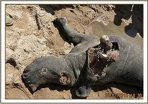 This rhino died as a result of fatal injuries inflicted by spearing with a clear motive of poaching.