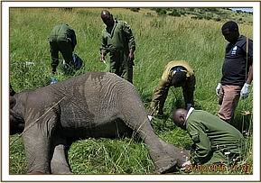 Elephant collaring which started the previous month continued with an additional three elephants collared during the month. Other activities took place, including ear notching and fitting of transmitters to the rhino population in the Mara among others.