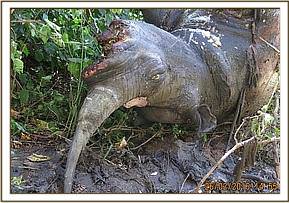 We found the carcass pulled out of the marsh where apparently it had submerged upon death. The tusks were already recovered by MMNR security team for accounting and safe custody.