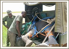 Examination after capture showed she had not sustained any injuries as was in good health. She was roped and placed on a pickup truck enroute to Keekorok airstrip where she was flown to DSWT elephant orphanage in Nairobi for fostering and better care.