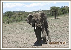 Restraint was achieved by use of 11mgs Etorphine hydrochloride delivered through a 1.5ml Dan-Inject dart from a vehicle.It took ten minutes for the drugs to take full effect with the elephant assuming left lateral recumbency. He had to be flipped over for proper examination and treatment to be achieved.
