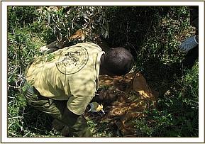 The elephant was revived from anaesthesia using 48mgs of diprenorphine hydrochloride administered through the superficial ear-vein. It was to be monitored daily by the Olkinyei wildlife conservancy rangers and the treatment was to be repeated after one week.