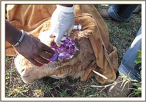 Treatment The wound was carefully cleaned using a lot of clean water then debrided using 10% hydrogen peroxide and treated by tincture of iodine applied topically followed by oxytetracycline spray and cloxacillin ointment. The animal was further treated using antibiotics (Betamox) and dexamethasone. Eyes were well treated with Opticlox eye ointment to prevent desiccation and infection.
