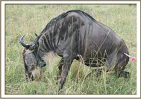 This bull was spotted by conservancy management in company of ten other males forming a bull herd. He had a wound slightly off his dorsal midline on the left side of withers .This wound was septic with evidence of purulent discharge.However,he did not appear weakened at the time as he kept pace with the rest of the herd though he kept on throwing soil onto the wound and this distracted him from feeding.