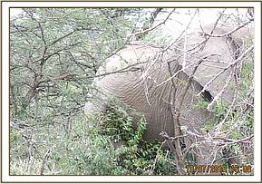 This bull was found in the company of three other males browsing in a small thicket full of acacia trees.