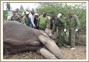 Treatment of a wounded elephant in Ol Donyo Rasha area, Narok.