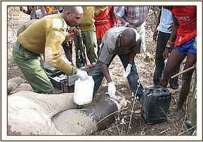 Treatment of a wounded elephant in Narosura area, Narok.
