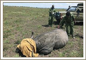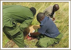 A total of 34 animals were sampled which included wildebeests, Topis, Hartebeests, Zebras and Impalas. This was done in conjunction with a team from KWS veterinary Department from headquarters who took the samples for analysis.