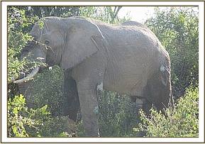 This elephant was found close to a thicket and appeared calm. He had a discharging wound on his left thigh and left elbow. He moved with a slight limp of his left hind leg and he had two other swellings on the lower side of his right abdomen which appeared like old healed scars.