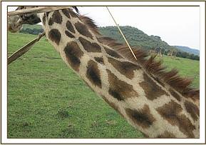 This giraffe was spotted by Mara Triangle rangers in a group that was browsing near Oloololo gate. She had an arrow sticking from the left side of her neck though she was still in good body condition.