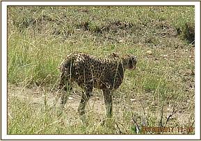 This lone cheetah appeared severely affected by mange with evident alopecia on his belly and neck. He walked with an occasional limp because of painful cracks in between his toes thought to be caused by excessive drying as a result of mange.