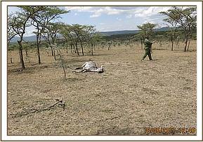 The ecosystem remained dry for the better part of the month with forage withering and slowly getting depleted. Advance wildebeest teams have crossed from Serengeti to Mara for their annual migration. Few cases were however recorded but incidences involving human wildlife conflict featured with an elephant seriously injured by spearing and a male common zebra being treated for arrow wound.