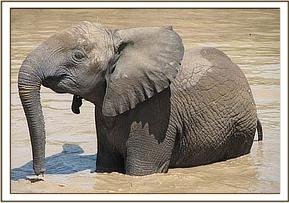 It was not possible to rescue the calf without restraining the mother which refused to move away despite making several attempts to scare it off. We then decided to anaesthetize the mother by darting so as to get a chance of rescuing the calf. The mother was then darted using 16mgs of etorphine hydrochloride combined with 1500 i.u of hyaluronidase. It became recumbent after about 5 minutes, it was then closely monitored to ensure that it was under a stable anaesthesia and dowsed with water to control its body temperature.