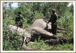 The exercise was carried out on 18/03/07, it was conducted by the veterinary team from Mara being assisted by research scientists from KWS headquarters and KWS staff from Narok station. The exercise was headed by the Senior Assistant director, Biodiversity Research and Monitoring division of KWS. Helicopter was used to track and spot the elephant before it was captured. After about 20 minutes of hovering, the collared bull was spotted in a company of another bull.