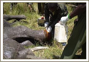 Treatments of elephants at Governors camp Masai Mara