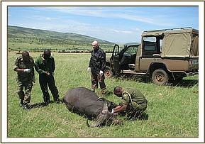 In the last month of March 2010, the Central Rift veterinary unit was mainly involved in Bovine tuberculosis disease surveillance and research. A total of 42 African buffaloes (Syncerus caffer) from 4 different herds were captured by darting and tested using STAT-PAK® test within Maasai Mara National Reserve.