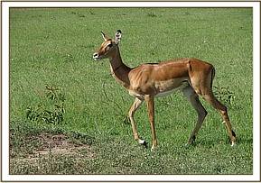 An adult female impala was sighted with a tight wire snare hanging round its neck. It was in a large herd of about 60 impalas near Oloolaimutiak gate. The snare was tightly encircling the neck but had not cut through the skin and muscles of the neck. It had not inflicted any injury to the animal even though it was strangling the neck and affecting its movement.