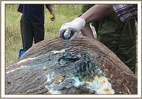 This was a case of an adult male elephant which had an infected wound on the right lateral side of the abdomen in Siana conservancy within the Mara ecosystem. The wound was much infected with a lot of necrotic debris and pus oozing out from the opening. The elephant was sighted by the scouts and manager of Siana conservancy who immediately informed the vet to attend to it. The elephant was under a great pain and preferred resting under tree most of the time. It also had the risk of developing peritonitis and septiceamia that could easily lead to death.