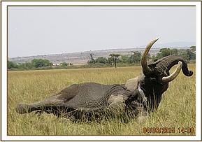 This massive bull was treated one month before for a suspected sprain of the right forelimb. He had since shown marked improvement and walked with ease but it was felt necessary to give him additional treatment to quicken the healing process. Olkinyei and Naboisho Conservancy Rangers had been monitoring this elephant and it was easy to find for the second and hopefully final treatment.