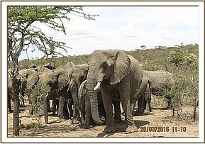 Immobilization was achieved by use of 17mgs Etorphine hydrochloride delivered through a 3ml Dan-inject dart from a vehicle. It took ten minutes for the elephant to be fully narcotized falling down to assume right lateral recumbency. Pinna of the ear was used as blindfold and plenty of water used to keep him cool.