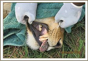 She could not bear her weight on three limbs since the right forelimb had a compound fracture of the radio-ulnar bone.This was a compound fracture with the bones exposed.