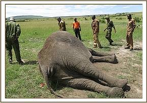 This old female was found dead the morning of the 26th March by the Reserve security patrol team. They called the mobile veterinary unit to ascertain the cause of her death.