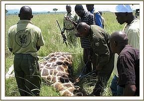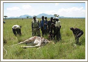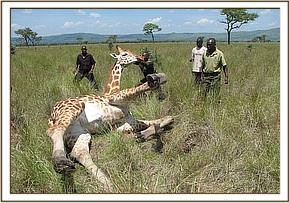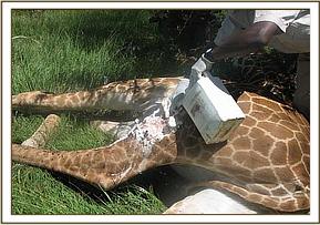 Treatment of a giraffe in Kawai area near Mara Triangle
