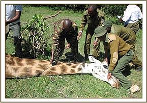 Removal of a snare from a Maasai Giraffe in Mara Triangle