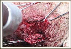 After assessing the extent of the injury, it was discovered that the intestines were intact though the omentum was involved part of it torn and hanging ventrally from the abdomen. The area around the injury was shaved, cleaned and disinfected. The protruding omentum was spread to see injured and necrotic areas which were trimmed and cleaned. The opening was extended to allow better assessment of the injury and ease of manipulation while returning the omentum back to the abdomen. After replacing back the omentum, the peritoneum was closed using number -2 catgut suture using simple interrupted pattern, overlying muscles were similarly closed with same material with the subcutis. Skin was also closed with Number -2 catgut with the assumption that the lion will not be immobilized again to remove sutures hence use of the absorbable suture for skin. Opticlox® (cloxacillin) ointment was infused into the suture lines and antibiotic spray put on skin. The lion was also covered with 3000mgs of amoxicillin and given20mgs dexamethasone anti inflammatory all given intramuscularly. Xylazine reversal was done after one hour by use of 40mgs atipamezole (antisedan®).