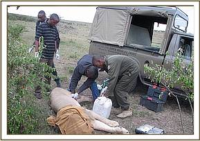 Treatment of an injured male lion in Maasai Mara NR